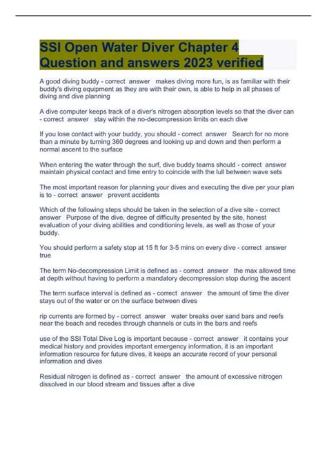 Read Online Answers To Ssi Open Water Diver Kindle Editon